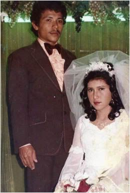 My mom told me during the wedding, her colleagues that came were stunned with how she looked with all the make-up 'cos she was usually plain and simple. And their reaction was, "Waaah, how come Rahena so pwetty the husband not hensem leh!"